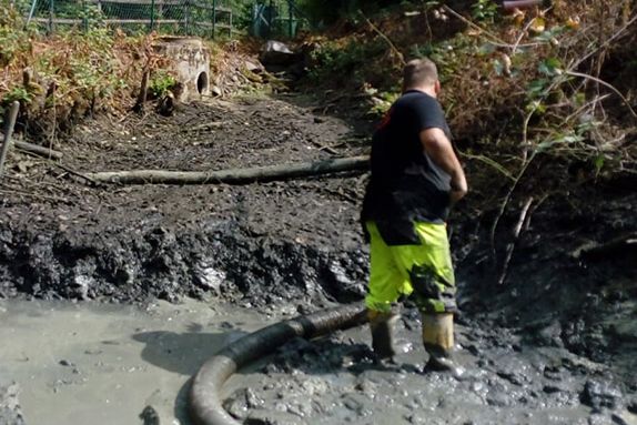 Regenrückhaltebecken dienen dem Schutz von Verkehrswegen vor Überflutung. Diese müssen regelmäßig gewartet werden. Hierbei werden die Anlagen von Schlamm, Sand und sonstigem Material, welches die Funktionstüchtigkeit reduziert befreit.